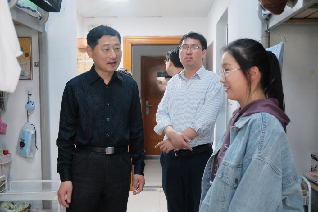 In order to do a solid job in the management of student dormitories and create a good learning and living environment for students, Yin Zhiguo, Secretary of the Party committee of the college, accompanied by Wu Liping, deputy secretary of the Party committee and vice president of the college and heads of relevant departments, visited and investigated the student dormitories on the morning of May 13rd.