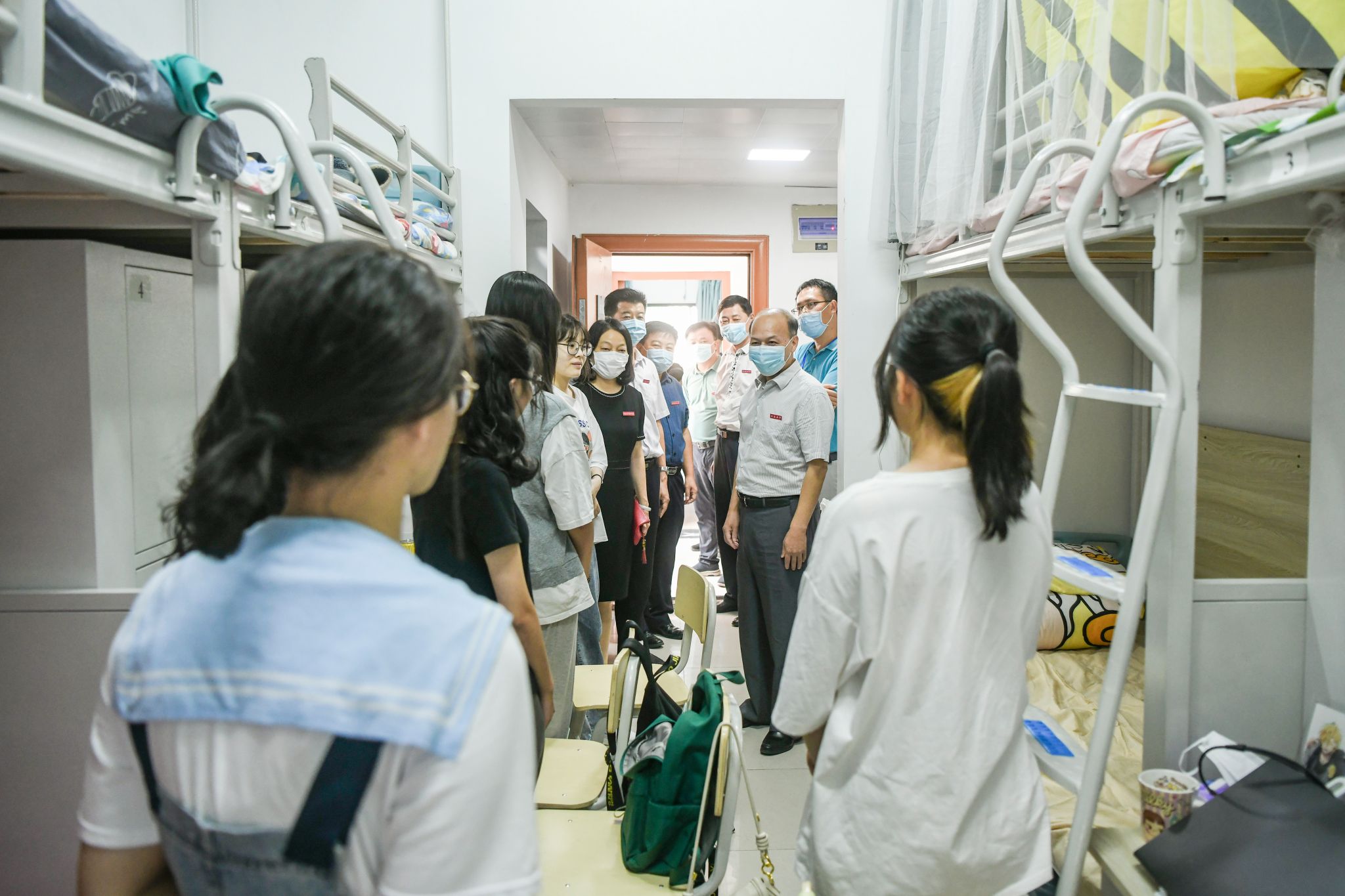 On September 10th, Mao Jian, Secretary of Dantu District Committee of Zhenjiang City, and other stuff came to the college to inspect and guide the epidemic prevention and control work.