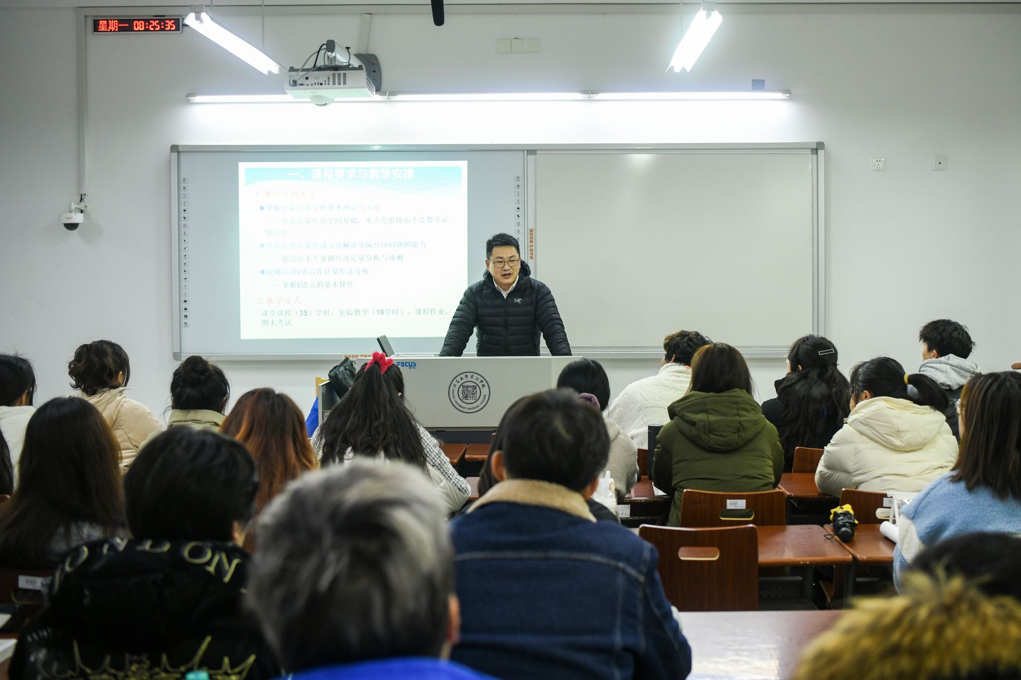 In order to strengthen teaching management and standardize teaching order, on the morning of February 13th, all college leaders of Jingjiang College, Jiangsu University, as well as heads of secondary colleges (departments) and relevant functional departments, formed a teaching inspection team. They went into the classes to inspect the arrival of teachers and students, teaching situation, and teaching security on the first day of school.