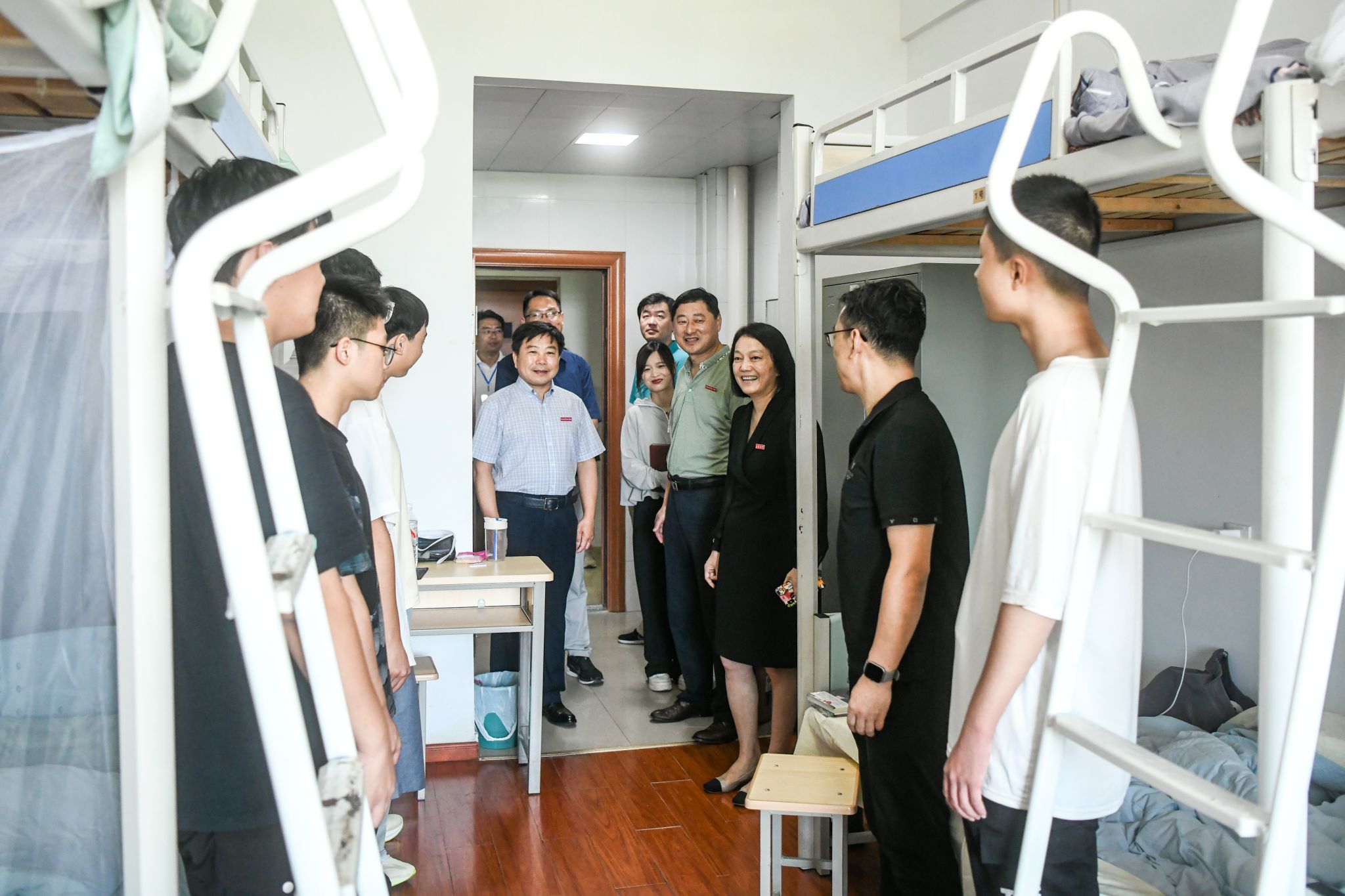 Later, Chen Hong and other teachers went into dormitory building to visit the freshmen. Chen Hong carefully asked about everyone's feelings after arriving at school, hoping that the students can adapt to the new environment as soon as possible, cherish the fate with the dormitory, care for each other. She stressed that Jingjiang College has been able to maintain a high rate of postgraduate entrance examination, on-line rate and admission rate. She encouraged new students to work hard, strive for self-improvement, firm ideals and beliefs, set lofty goals, continue to carry forward the traditions of Jingjiang, and write a bright future with down-to-earth actions.