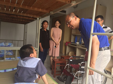 Chen Zhigang congratulated Wang Qiang as a university freshman and asked details about Wang Qiang's physical condition, family and learning situation. During the conversation, Chen praised Wang Qiang for his efforts to overcome difficulties and make unremitting efforts. At the same time, he earnestly encouraged him to face the disability of the body, cherish the learning opportunities and study hard.