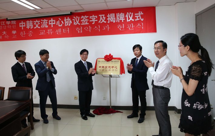 Based on the early communication of comprehensive cooperation, both parties decided to establish the China-Korea Exchange Center in Jingjiang College. This center will provide the teachers and the students more convenient conditions for studying and exchanging. On the morning of Sept 17th, the signing and opening ceremony of China-Korea Exchange Center was held in the Jingjiang College. Dean Lu Zhengnan and Dean Lee Hwan tae respectively represented the two sides to sign and inaugurate. After that, Dean Lu and Lee both introduced the two universities at the meeting, including the history, disciplines and strength as well as great achievements in scientific research, talent cultivation, and international cooperation and so on. Deputy Dean Chen Weiping and other related personnel of the two parties attended the ceremony. In the afternoon, Deputy Dean Chen Weiping, Deputy Party Secretary Xia Ming and delegates from Mokwon University discussed the details of in-depth cooperation and exchanges. The two sides reached a cooperative intention in the field of student summer camp, "2 + 1 + 2" joint degree program, International Student Symposium and etc. They also implemented on specific details to expand the scope of cooperation and deepen the bilateral friendly cooperation between the two universities.