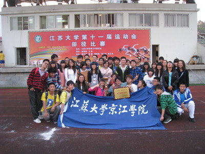 I n the team sport, our college won the first prize in concerted effort; the second in kangaroo jump and the fourth in teacher-student relay race. In individual competitions, Fu xiaobin gained the first place in both the high jump and the long jump; Huang jihong and Wang anyi won the first frize of men and women’s shot up separately and Zhu lifu gained the second prize of women's 800 meters. They won the honor and applauses through the sacrifice of perspiration and efforts and we Jingjiang College are proud of them.