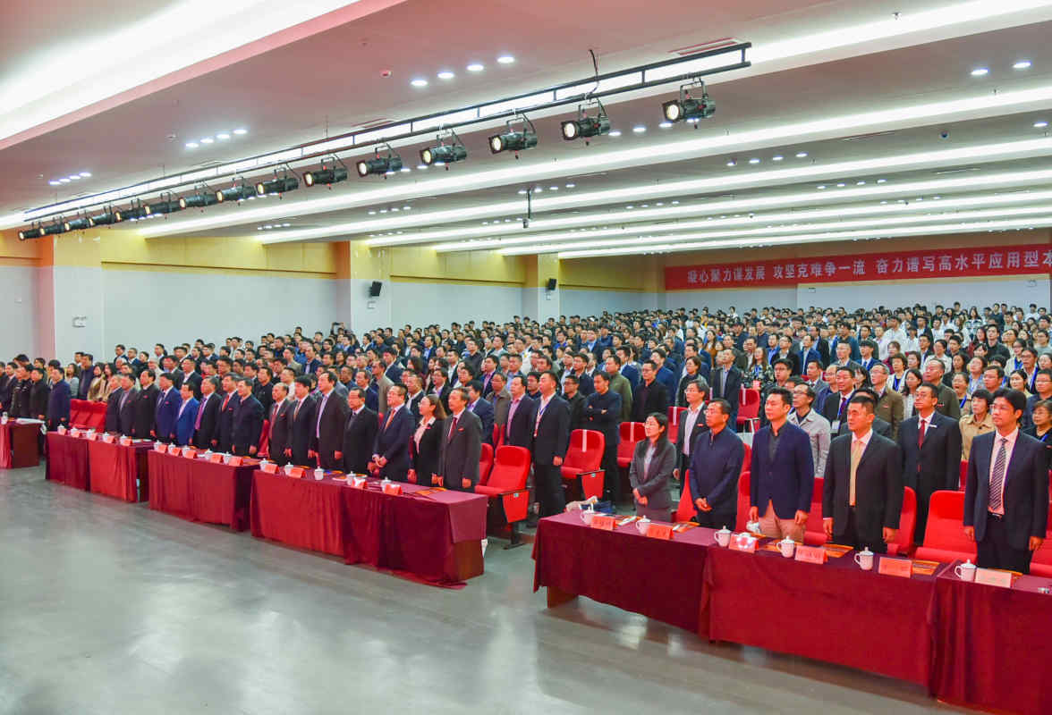 "Jingjiang College of Jiangsu University is like a bright pearl, shining the glory of a century of culture." On October 26, our college hosted the 20th Anniversary Development Conference and Applied Talent Training Summit Forum on the new campus. Set sail, adhere to the fundamental task of Lide Shuren, and strive to write a new chapter in the construction of high-level application-oriented colleges. Hui Jianlin, Secretary of the Zhenjiang Municipal Party Committee, Sun Xiaonan, Member of the Standing Committee, Minister of Propaganda and United Front of Zhenjiang Municipal Committee, Yuan Shouqi, Secretary of the Party Committee of Jiangsu University, Yan Xiaohong, President of Jiangsu University, Chairman of Jingjiang College of Jiangsu University, Yan Suihong, Member of the Standing Committee of Nanjing University, Secretary of the Party Committee of Jinling College of Nanjing University Leaders were invited to attend, guests from brother institutions, guests from international cooperation universities, guests from internship bases, school-enterprise cooperation units, media guests, leaders of various functional departments of Jiangsu University, secondary colleges, representatives of our alumni, all teachers and students Gathered together. Chen Zhigang, Secretary of the Party Committee of the Academy, introduced the leaders and guests attending the conference. The conference officially opened in the solemn national anthem.