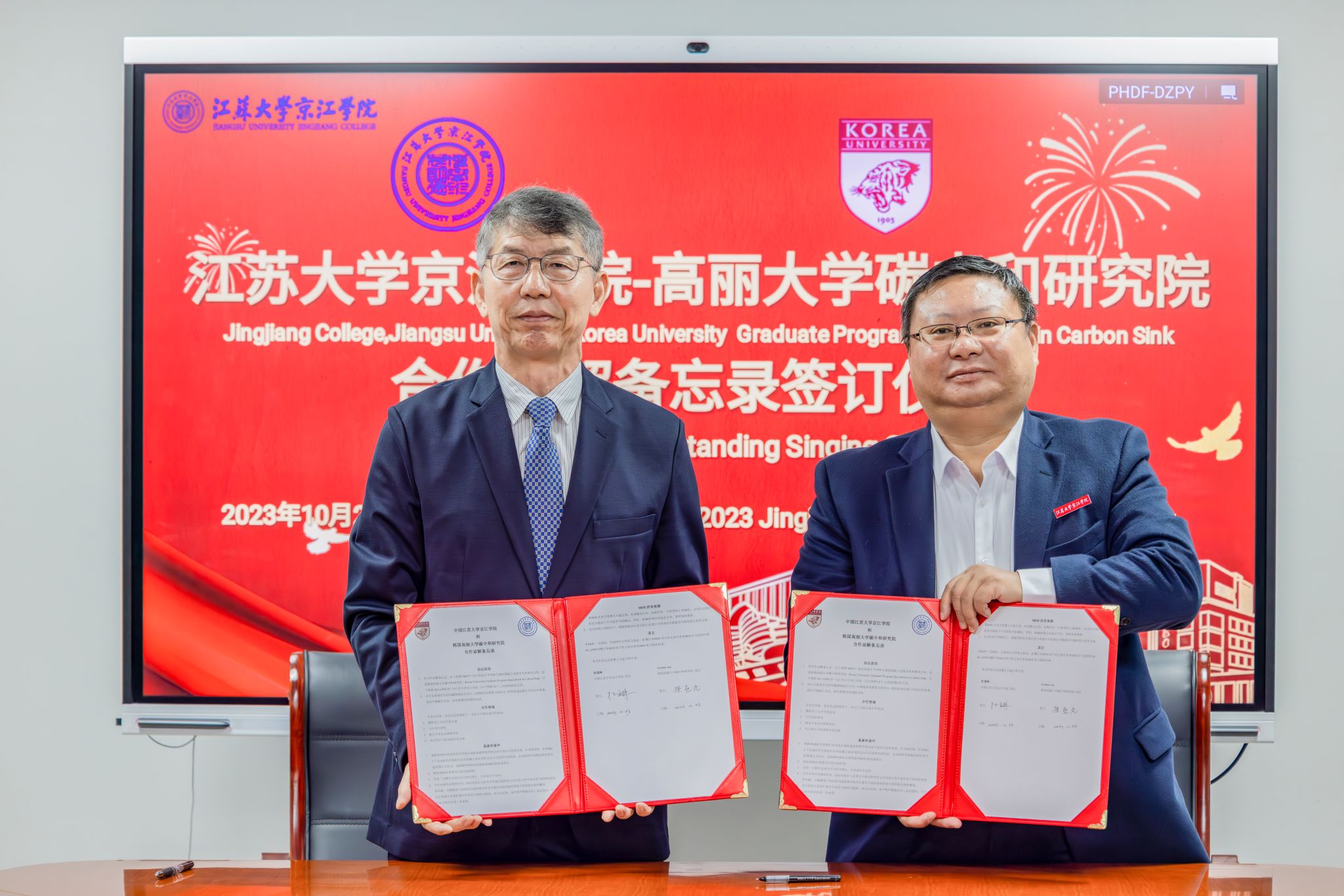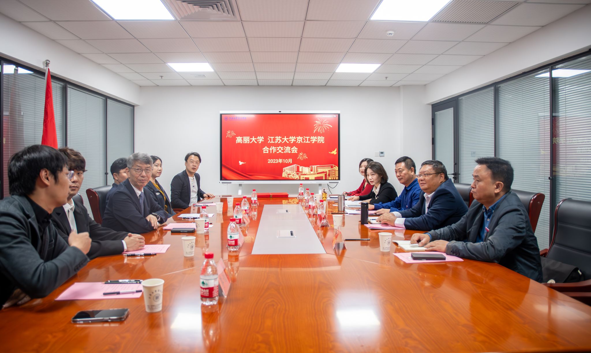 On October 23rd, four representatives, including Academician Yowhan Son, dean of the Institute of Carbon Neutrality of Korea University, and Professor Jinho Jung, head of the Environmental Science and Engineering Research and Education Group and director of the Department of Environmental Science and Ecological Engineering of Korea University came to Jingjiang College of Jiangsu University for exchange and visit. Cui Jingui, Secretary of the Party Committee of Jingjiang College of Jiangsu University, President Du Daolin, Vice President Fan Yanhua and relevant persons of charge of General Office received the guests and conducted negotiations and exchanges. The meeting was hosted by Fan Yanhua.