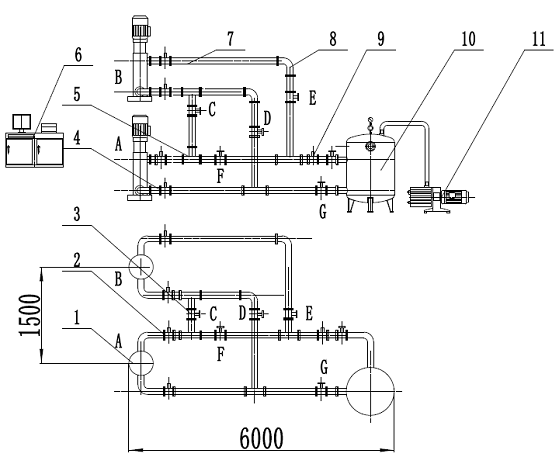 系统图管路的平面布置尺寸,长宽6000*2000,投标单位在投标文件中需提供完整的实验台设计图等系统设计方案。