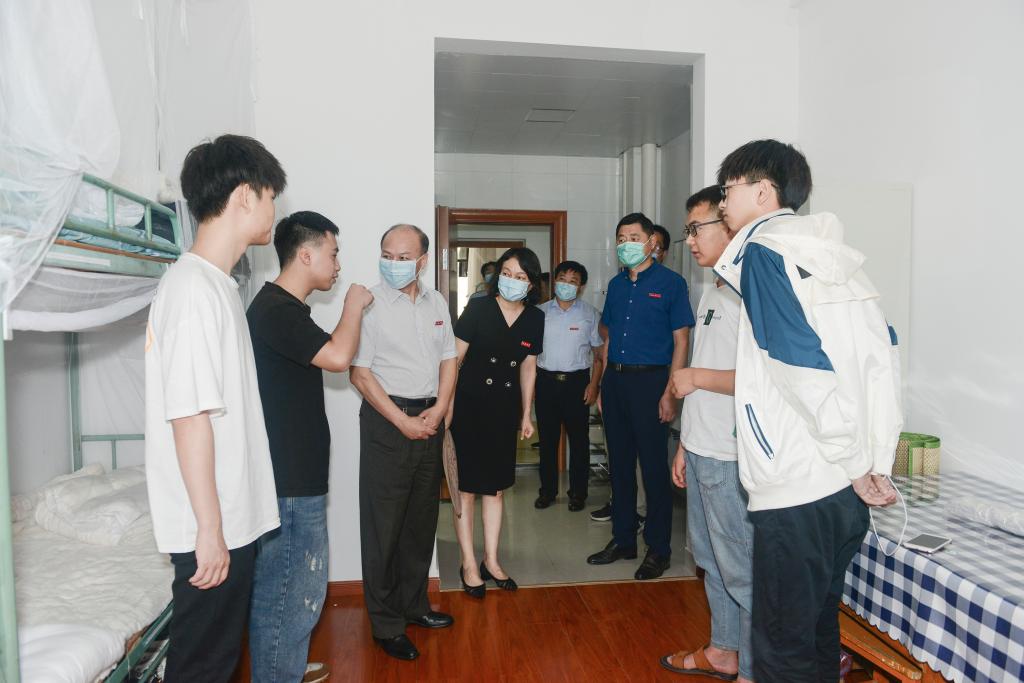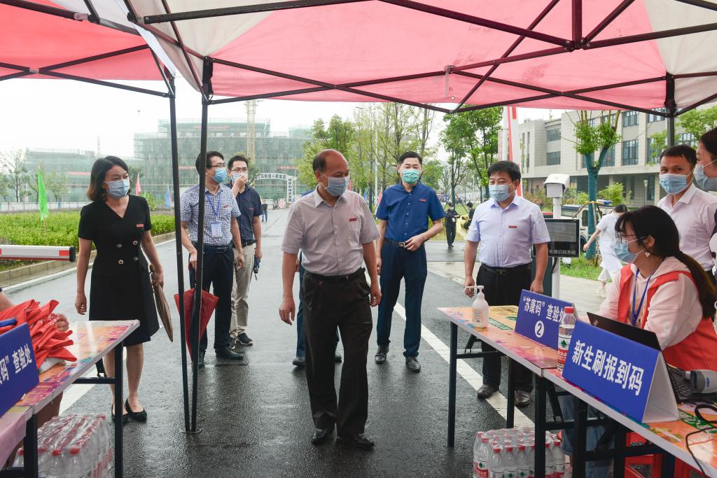 9月15日下午,江苏大学校长、学院理事长颜晓红,江苏大学副校长陈红,在江苏大学校办主任吴麟麟、院党委书记尹志国,院长赵喜仓,党委副书记、副院长吴立平的陪同下,亲临新生接待点看望新生及家长。在新生接待点,校领导亲切询问新生及家长的诉求,了解新生报到进展情况,并感谢工作人员和志愿者的辛勤付出,勉励大家继续做好接待服务工作;在新生宿舍,校领导与新生亲切交谈,一方面介绍我校办学情况,另一方面聆听新生到校后的感受,并热烈欢迎新同学加入江苏大学京江学院大家庭。