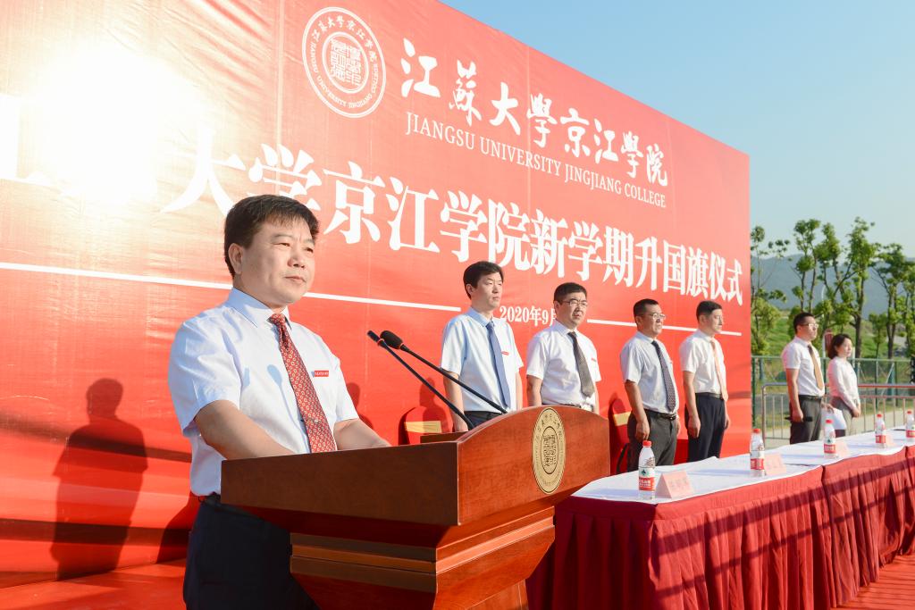 升旗结束后,院长赵喜仓发表新学期开学讲话。他指出,今年是极不平凡的一年。抗疫中的中国速度、中国效率、中国力量充分彰显了中国共产党的领导和中国特色社会主义制度的显著优势。在这场“大考”中,京江人与全国人民一道众志成城、共克时艰,用实干和担当贡献了疫情防控的“京江力量”。赵院长就新学期适应“疫情常态化+”的学习和生活,对同学们提出三点希望:一是务必在思想上高度重视疫情防控,严格执行学校疫情防控的规定和要求;二是务必志存高远,树立远大的理想和抱负,努力使自己成为德智体美劳全面发展的应用技术型人才;三是务必做好学业规划,科学统筹好时间资源,使大学生活更加绚丽多彩。