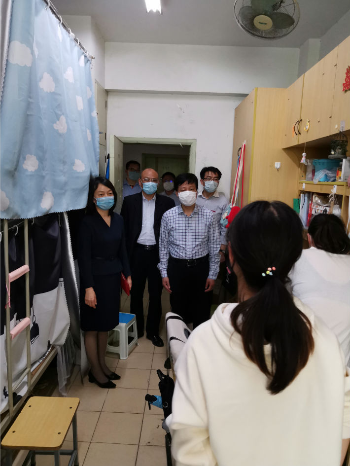 我院2016级毕业生5月7日当天返校353人。颜校长一行进入G区3栋男生宿舍,对学生们的顺利返校表示欢迎,并与他们亲切交谈。颜校长详细询问了学生的假期学习和生活状况,返校后的学业规划等,希望同学们能珍惜返校机会,遵守学校疫情防控各项规定,做好个人防护,学会调适情绪、加强身体锻炼。在317宿舍,颜校长与考研复试学生进行了详细交流,勉励大家要把握在校时光、再接再厉,争取在面试中取得优异成绩,并叮嘱有调剂需求的学生积极关注研究生招生网站调剂信息,主动联系学校,早行动、早准备,提高考研成功率。在311宿舍,校领导同正在完善毕业论文的学生就毕业论文质量、毕业要求等问题进行了深入交流,鼓励大家要合理安排时间、主动与导师沟通,按时完成学业,以积极的态度面对就业。在F区女生宿舍,陈红副校长亲切叮嘱大家要注意个人安全,要根据个人发展规划积极做好就业和升学准备,脚踏实地完成学业、确保顺利毕业和就业,强调如果在生活中遇到困难和困惑,一定要及时寻求学院老师的帮助,学院一定会为他们的正常学习生活提供应有保障。