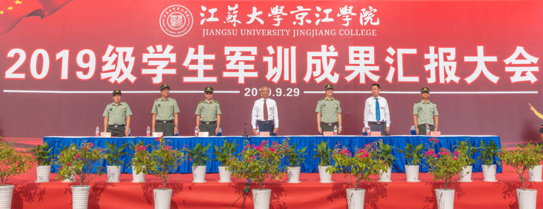 9月29日,在举国喜迎国庆的喜庆氛围中,我院2019级学生军训成果汇报大会在新校区田径场隆重举行。学院党委书记陈志刚,陆军军事交通学院镇江校区学员六大队政委党小文上校,江苏大学人武部副部长黄忠来,2016级学工办主任、军训团团长蒋豪,2019级学工办主任、军训团政委李磊,陆军军事交通学院镇江校区船艇动力系参谋、军训团副参谋长顾锡旦上尉,相关职能部门负责人以及2019级全体辅导员出席大会。大会由学院党委副书记、副院长吴立平主持。