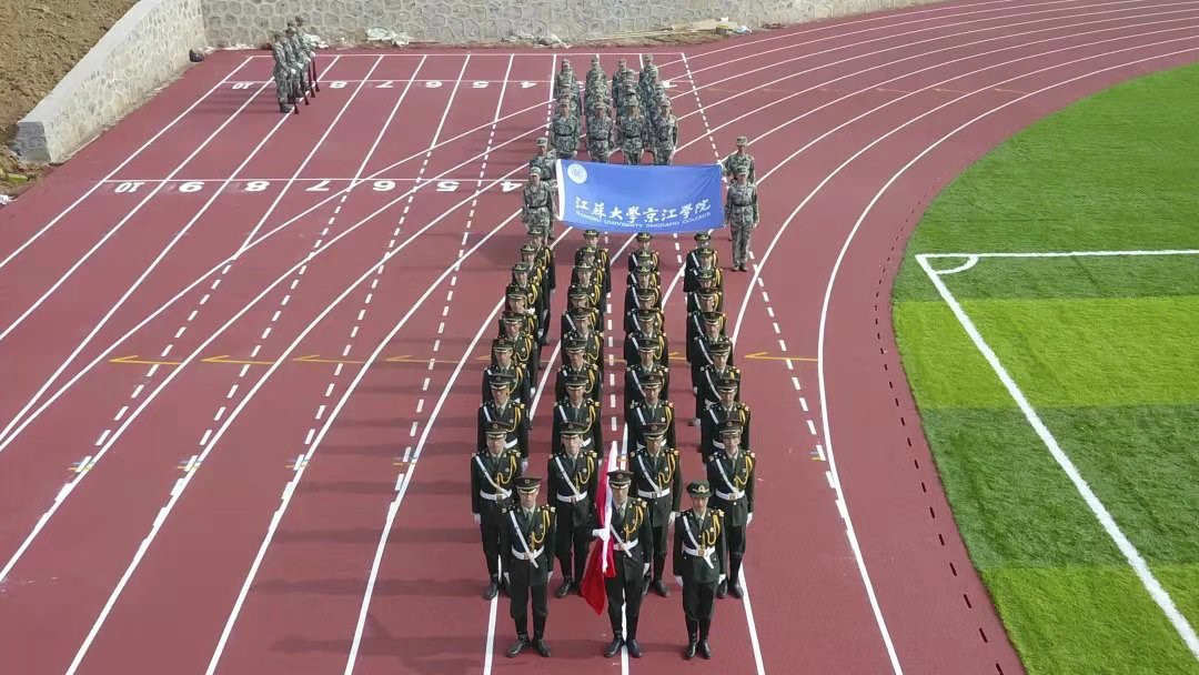 2581名新生身着迷彩,用热血青春向祖国深情告白。特色方阵用队列编排出“1949-2019”“70”“中国”“京江”“爱心”“20”“中国地图”等字样和图案,拉开了大会的序幕。擎旗手、护旗兵和国旗班以饱满的热情、斗志昂扬的精神风貌首先接受检阅。