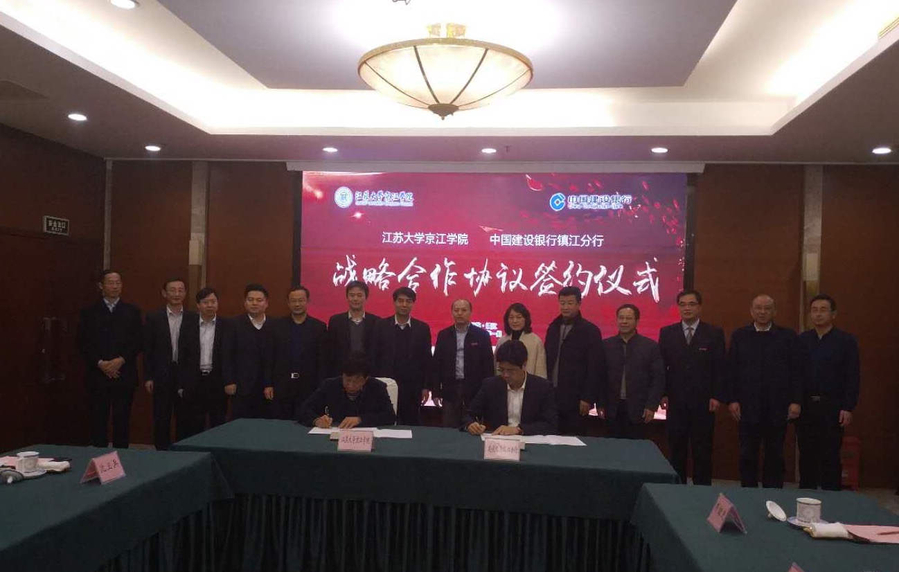 1月18日,我院与中国建设银行镇江分行举行了战略合作签约仪式。江苏大学校长、江苏大学京江学院理事长颜晓红,中国建设银行江苏省分行副行长陈宝权和双方相关部门领导出席了签约仪式。协议就双方资源整合互享、服务教育、共建智慧校园等框架内容开展。仪式由江苏大学副校长陈红主持。