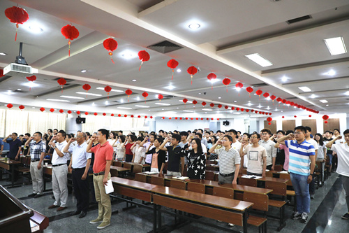 会议第三项议程是不忘初心,砥砺京江,党员宣誓(重温誓词)仪式。在院党委委员宗伯君副院长的带领下,全体党员高举右手,面向党旗,严肃认真地进行了宣誓。让党员不忘入党宣誓时的庄严承诺和坚定决心,在党旗下接受心灵的净化和洗礼,牢记共产党员的政治责任和历史使命,不断保持共产党员的先进性,以更加饱满的热情投身各自工作和学习,切实发挥共产党员的先锋模范作用,永葆共产党员的政治本色。