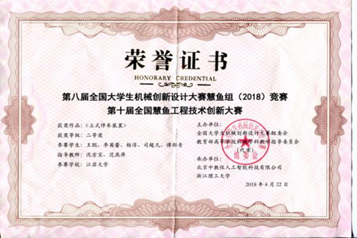 2018年4月20日至4月22日,第八届全国大学生机械创新设计慧鱼组(2018)竞赛暨第十届全国慧鱼工程技术创新大赛在浙江理工大学举行。在“解决城市中小区家庭用车停车难问题”项目中我院J机械1503班级王聪、J机械1501班级李英蕾、J机械1503班级杨淳、J机械1501班级司超凡和J机械1504班级谭郁青五名同学制作的立体旋转停车装置获得了二等奖的好成绩。