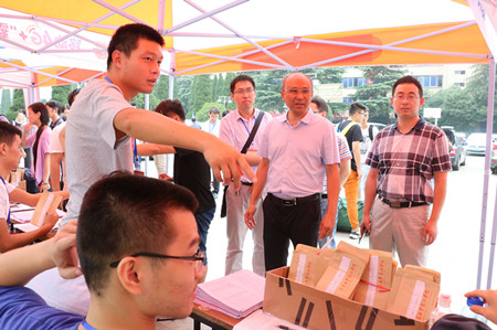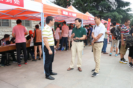 9月10日下午,我院院长路正南、副院长陈卫平、党委副书记吴立平,党委书记陈志刚、副院长宗伯君、副院长孙国分别赶赴京江学院中山校区和梦溪校区,深切慰问迎新工作人员,并走访新生宿舍,详细了解迎新工作的进展情况和新生报到情况。工作人员对学院领导的慰问深表感谢,投身于优质服务的热情不断高涨。在走访新生宿舍期间,院领导与新生家长亲切交谈,并表示学院会尽最大努力为学生提供优质的生活条件和学习环境,让每一位学生都能在京江健康快乐地成长,收获精彩美丽的人生。