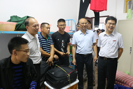 在新生接待处、“绿色通道”咨询处、食堂、学生公寓等地,颜校长听取了有关人员的汇报,详细询问了迎新工作的进展情况,与新生、家长、工作人员和志愿者进行了亲切交谈,嘱咐全体工作人员热情周到地做好迎新各项工作。
