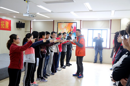 开场热身后,全体新教师分为两个小组,确定各自队名为“树人队”和“启航队”,竞争与合作在两队之间展开。“速记姓名”、“花海取字”项目消除了新教师之间的陌生感;“挑战信任背摔”、“挑战5分钟”、“雷区取水”项目增加了团队之间的默契;“齐眉棍”、“七巧板”、“急速60秒”项目考验了新教师们完成项目的能力,也锻造了他们的凝聚力。