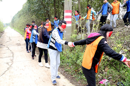 值得一提的是本次素质拓展的最后一个项目“团队盲行”。活动中,新教师们被眼罩蒙住了双眼,彼此搀扶着前行。他们爬过了陡坡、迈过了水塘、躲过了枝丫,跌倒了又爬起,但是不曾有一刻、不曾有一人放开彼此的手,最终在6位勇士教师的守护下到达终点。大家席地而坐,舒缓的音乐声响起,因为一场游戏,职场之路上、人生之路上太多平日里被忽视的细节在眼前放大、太多平日里不易说起的感谢在口中哽咽,太多平日里不易外露的情绪在泪水中喷涌。