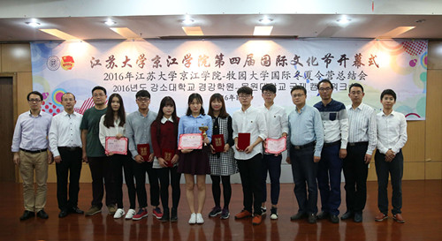 10月19日下午,我院第四届国际文化节开幕式暨韩国牧园大学2016国际冬、夏令营总结会在京江报告厅成功举办。校团委书记杨道建、校长办公室副主任徐伟、党委宣传部副部长张明平、语言文化中心副主任江永华、我院副院长孙国等领导出席活动。