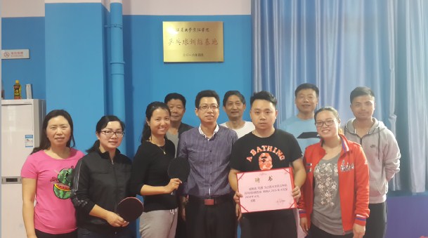 4月13日下午,“江苏大学京江学院乒乓球训练基地”在镇江国盛乒乓球俱乐部挂牌成立,我院副院长周西安、工会主席魏伟及10多名教职工参加了挂牌仪式,并为马良同志颁发了教练员聘书。教练员马良曾效力于福建省体工队,镇江市“千台万人”赛男单冠军得主,曾代表我市与国家乒乓球队张继科、许昕等世界冠军同台竞技。仪式后,教练员现场对教职工逐一进行技战术指导,讲解动作要领。