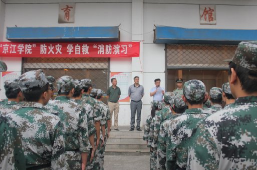 下午两时许,100名新生在演习楼前整队集合。院党委副书记、副院长夏民为此次演习作动员讲话,说明了演习的目的与其重要性,并着重强调了演习中的安全问题,同时也表达了对演习成功的祝福与期待。紧接着,消防支队庆经纬教官对在场的新生进行了简短的消防知识培训,以确保演习顺利进行。