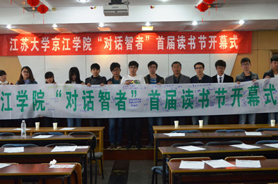 夏民副书记首先为本次读书节致辞,他强调读书对学生有着潜移默化的影响,有利于开发心智、引导情趣、培养良好的习惯和陶冶性情,是每一位学生必备的软实力。随后,陈志刚书记宣布江苏大学京江学院“对话智者”首届读书节开幕。接下来,笪远毅老师为在场的大学生“漫谈读书”。笪老师对我们现在所处的社会氛围进行详细剖析,向同学们介绍了我国目前在读书方面的欠缺,同时也向在座的同学提出“多读书,善读书”的期望。紧接着,他又生动地说明了多读书的益处,明确指出读书可以抵制浮躁,缓解压力,增强分析思维能力,在提高写作技能的同时积淀智慧,再度唤起新的追求与动力。最后,领导老师和同学们一起在横幅上写上对读书的期望与寄语,开幕式圆满结束。据悉,开幕式结束后,京江学院还将举办为期一个月的读书节系列活动,用来营造全院“多读书、读好书、善读书”的良好氛围。