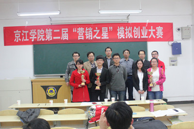 随着营销之星爱心义卖活动在京江大厅成功举行,从38个营销团队中脱颖而出的11个团队迎来了本次营销之星活动的另一个重头戏——第二届“营销之星”模拟创业大赛答辩会。经过精心准备,本次活动于4月24日在学院2211教室隆重举行。学工处副处长吴立平、管理学院副教授宋丁伟、学工处就业办主任任泽中、校团委志工部部长庄伟楠、院实践教学科科长王玉辉、院团委副书记高伏康出席答辩会并担任评委。