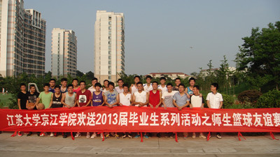 毕业季,话离别。为欢送2013届毕业生,6月20日下午,江苏大学京江学院在学院篮球场举办了一场别开生面的欢送毕业生篮球友谊赛。参赛队伍为毕业生代表队和学院教师代表队。