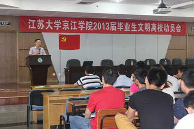为了进一步落实毕业生文明离校要求,确保毕业生安全、文明、有序离校,6月6日下午,我院在京江报告厅隆重举行2013届毕业生文明离校动员大会,院党委副书记王善民、组织干事倪鸿燕、毕业班全体辅导员、毕业班学生党员、各班班委及学生代表参加,会议由09级学工办主任骆剑峰主持。
