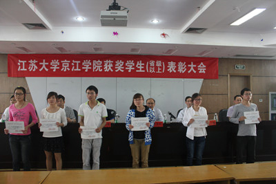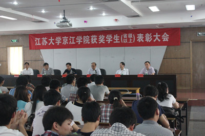 首先由江苏大学京江学院党委书记陈志刚宣读表彰文件。随后,伴着激昂的音乐和热烈的掌声,学院领导给获奖学生代表颁发了荣誉证书及奖励。学生熊新宇代表获奖学生作了发言。