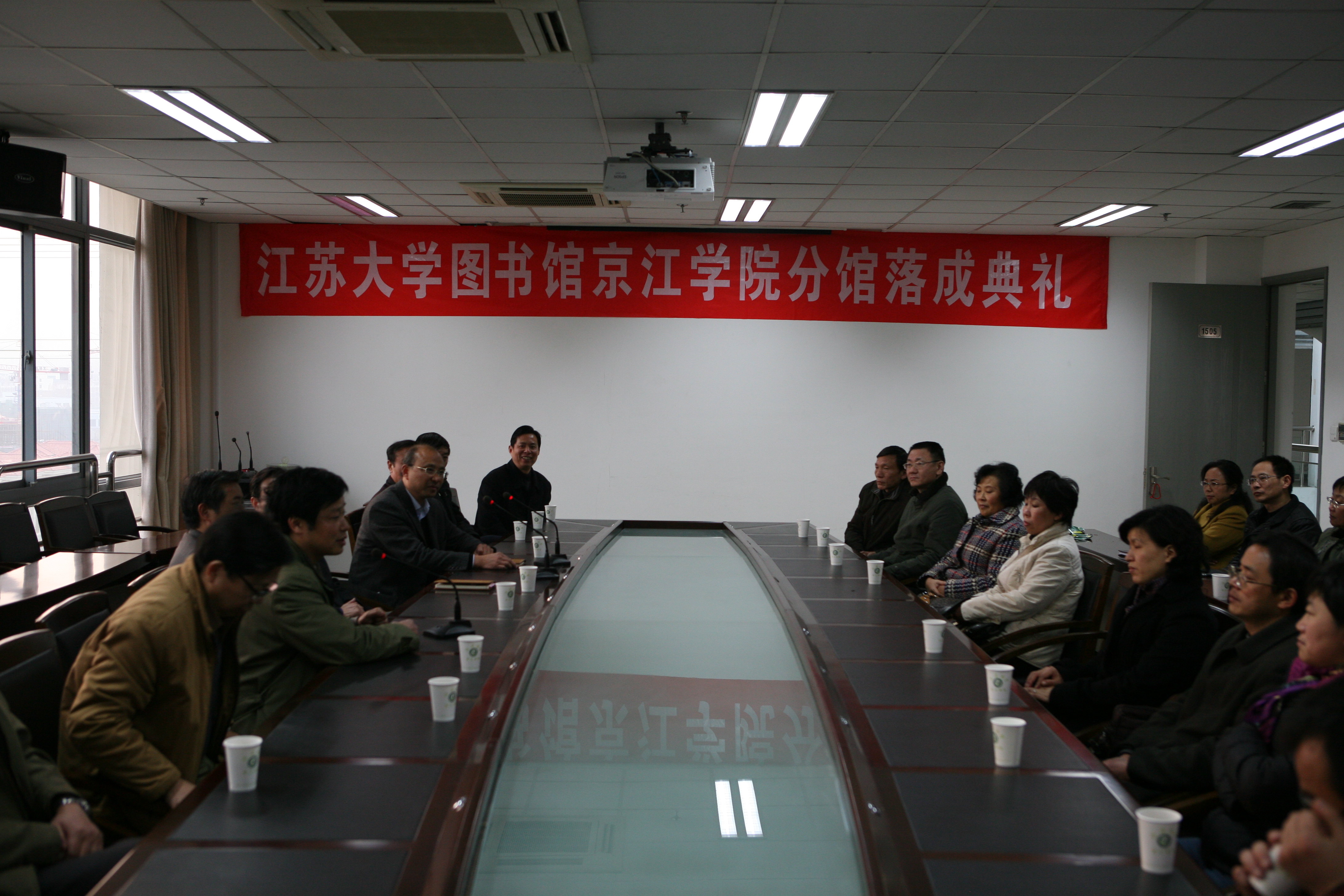 为适应信息化时代对高等教育的需求,同时为满足独立学院评估的需要。经过近半年的筹建,江苏大学图书馆京江学院分馆日前挂牌成立,12月21日下午在京江学院举行了简朴的落成典礼。江苏大学副校长冯振卿,图书馆馆长卢章平、设备处处长陈留平、京江学院以及相关职能部门的领导老师参加了开馆仪式。