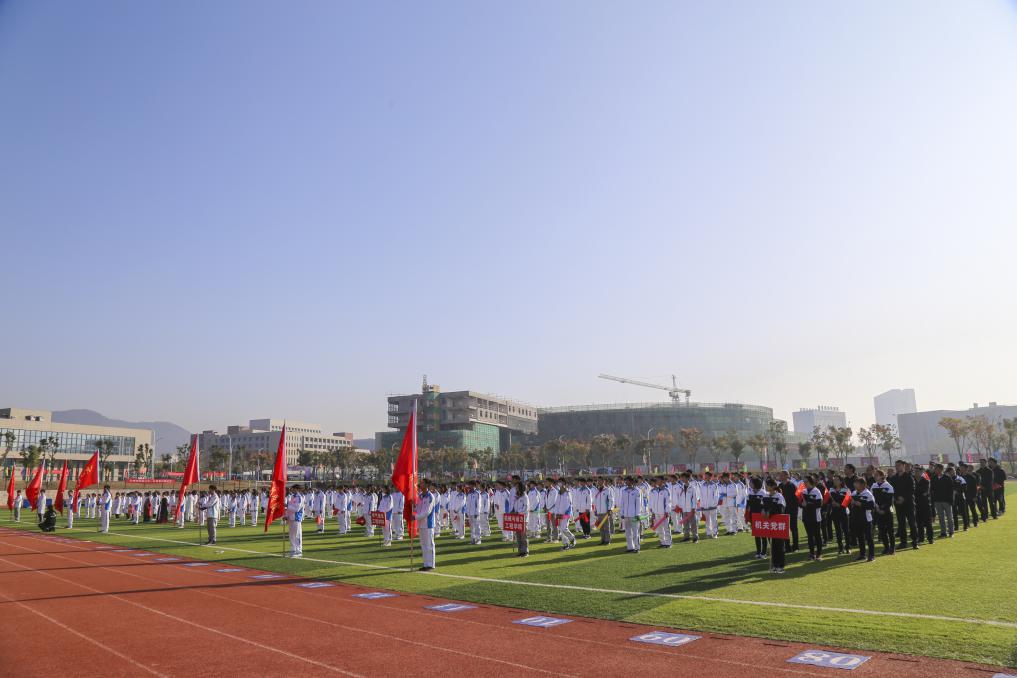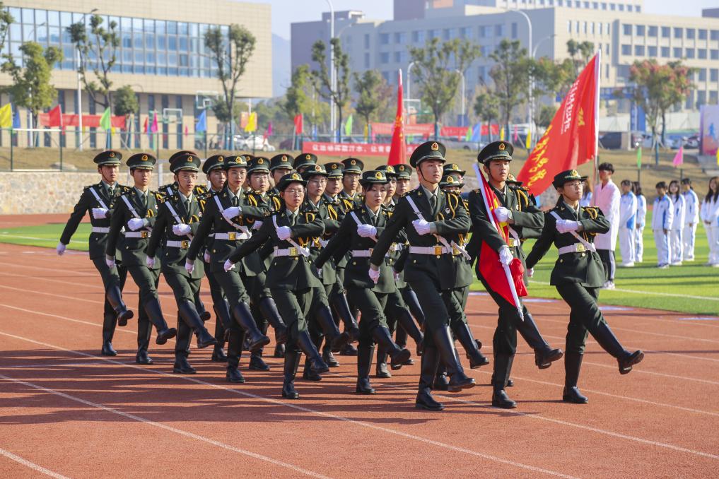 天朗气清,踏梦而行。在慷慨激昂的运动员进行曲中,来自裁判员、二级学院师生、机关教职工代表的九支方阵队伍迈着整齐有力的步伐,精神抖擞地走过主席台,接受检阅。入场仪式后是庄严的升国旗仪式,全体师生肃立,注目鲜艳的五星红旗在国歌声中冉冉升起。