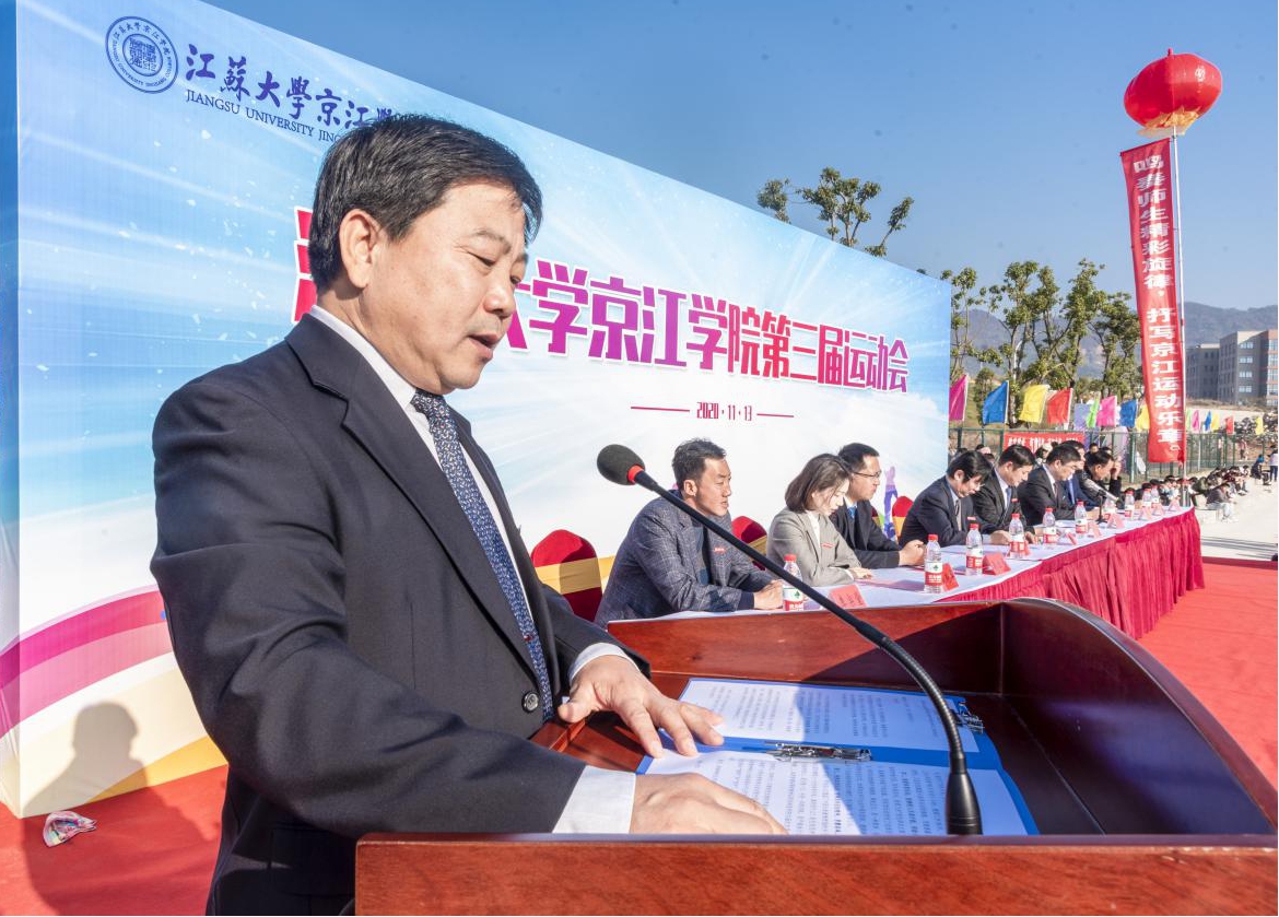 赵喜仓致开幕辞。他指出,今年“新冠”疫情为我们敲响了警钟,也唤醒了大家对运动与健康的重视和追求。在常态化疫情防控背景下举办的这次运动会,意义非凡。体育工作同样是高水平应用型大学建设的重要内容,希望全院师生用好新校区丰富的体育资源,热爱体育运动,成为怀揣体育精神的京江人。最后,赵喜仓与大家分享了关于“运动有益”的三点体会,号召广大师生将体育运动过程中团结协作、无畏挑战、奋勇争先的运动精神转化为推动高水平应用型大学建设的内在动力,争做学院事业发展的“健将”和“能手”。