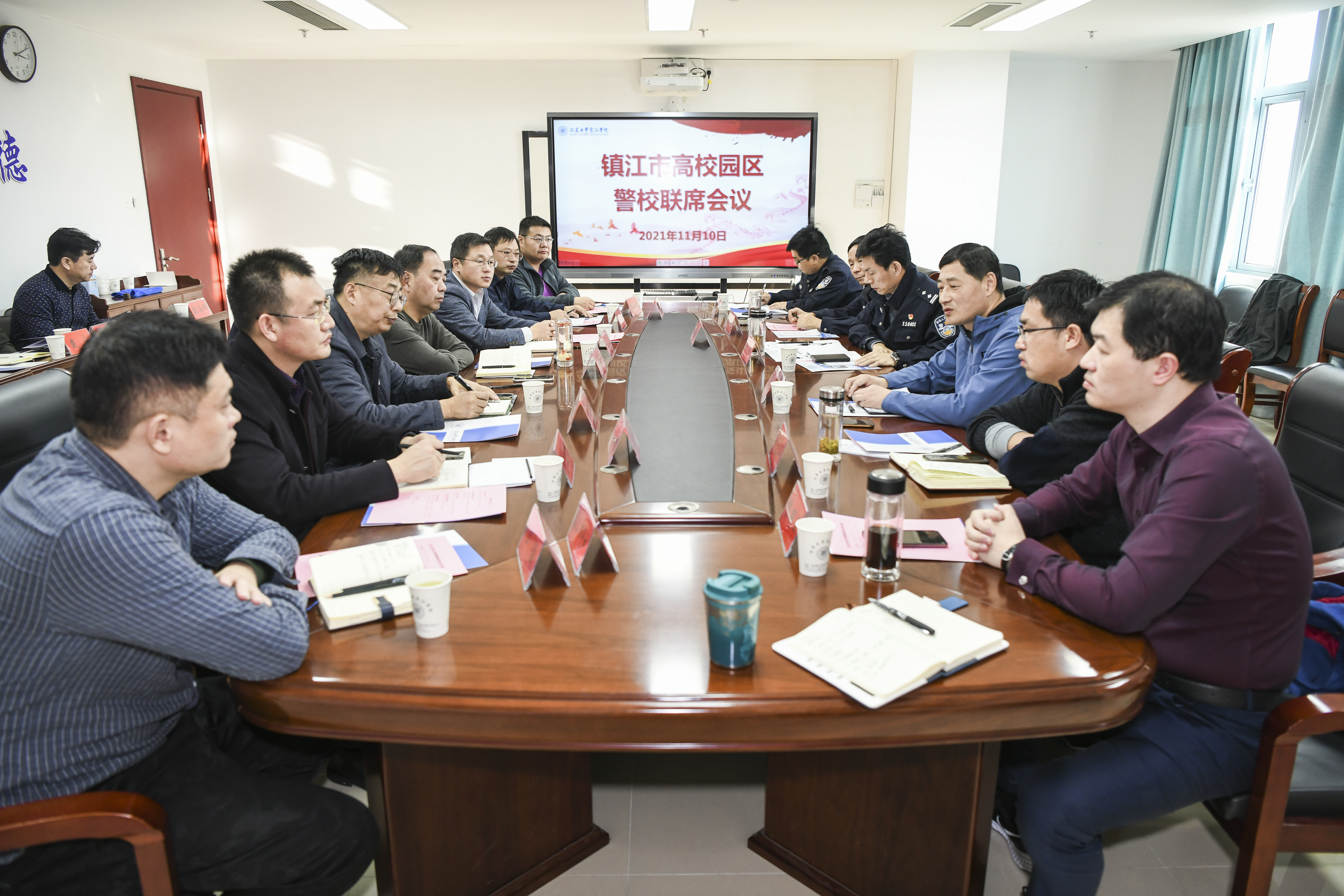 11月10日,镇江市高校园区警校联席会议在我院大学生活动中心320会议室召开。长山派出所,江苏科技大学,镇江高等专科学校,镇江技师学院,江苏省交通技师学院有关领导,我院党委书记尹志国,党委副书记、副院长吴立平以及相关部门负责人出席会议。会议由我院副院长陈明军主持。