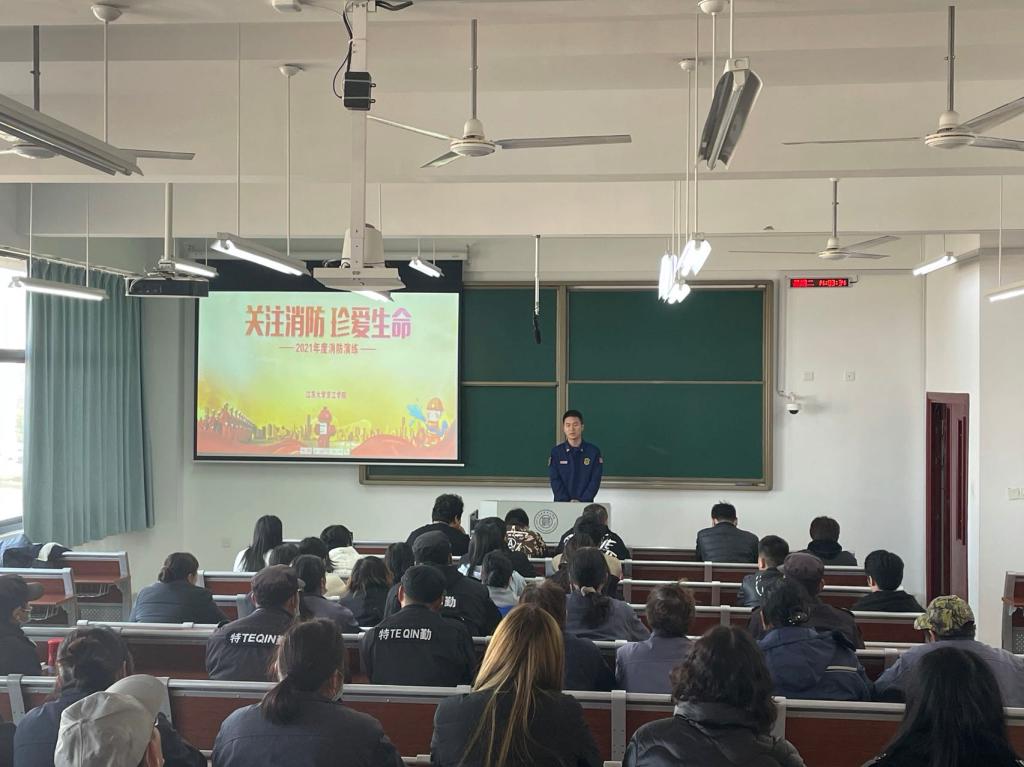 演习开始由宜城站消防大队消防员为大家普及消防安全知识,随着讲解的深入,工作人员点燃“烟雾弹”,现场人员在工作人员的引导下,安全有序地从“火灾”现场迅速撤离至文心楼前的空地。