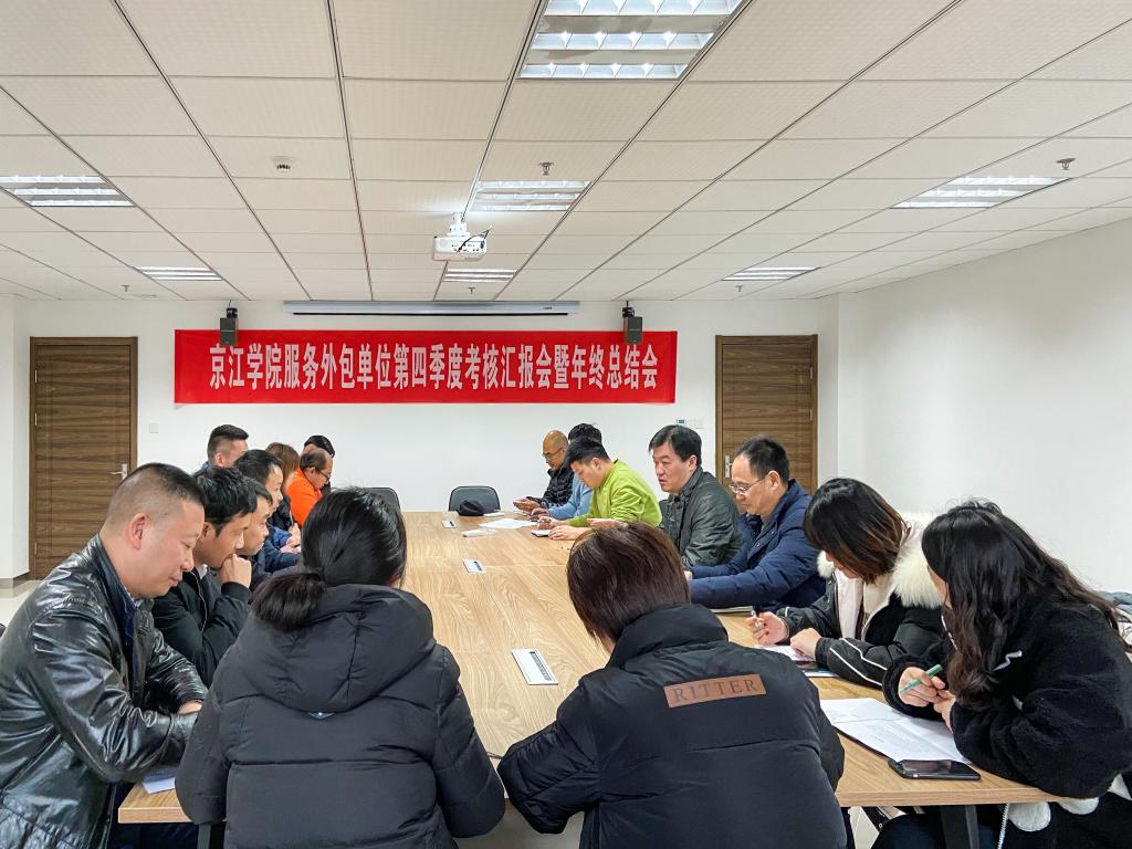 12月24日,学院组织召开服务外包单位第四季度考核汇报会暨年终工作总结会,学院副院长陈明军,保障服务部部长卞力及相关工作人员,各服务外包单位负责人参加会议。会议由陈明军主持。