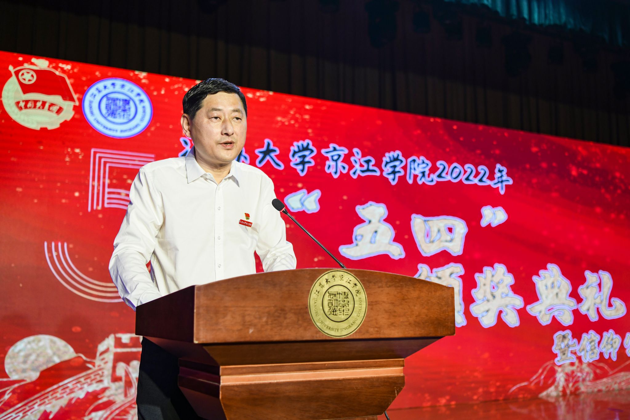 5月4日,“忆峥嵘岁月,传时代薪火”——江苏大学京江学院2022年“五四”颁奖典礼暨信仰公开课在学院大学生活动中心大礼堂和学院官方抖音号线上线下同步举行。党委书记尹志国,院长赵喜仓,党委副书记、副院长吴立平,党委副书记、纪委书记陈立勇,副院长陈明军,相关职能部门负责人,二级学院(部)党总支书记及广大团员青年代表参加了活动。其他在校团员青年通过学院官方抖音号直播线上观看。