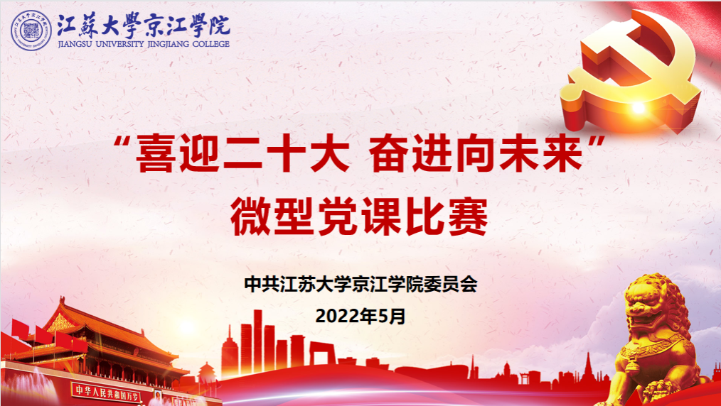 为喜迎党的二十大,讲好新时代奋进故事,5月13日下午,京江学院成功举办了“喜迎二十大 奋进向未来”微党课比赛。江苏大学学生工作处副处长陈权,江苏大学党委宣传部副部长吴奕,江苏大学京江学院关工委常务副主任闵昉莅临现场担任评委。