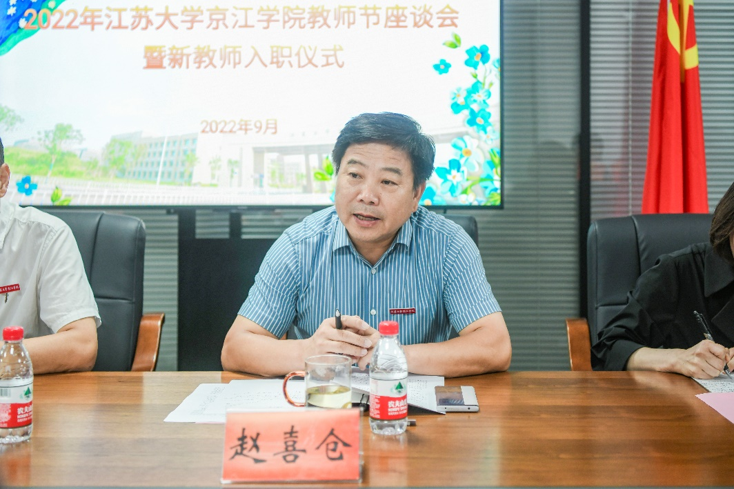 院长赵喜仓代表学院向全体教职工致以节日的祝福和诚挚的问候,对新入职的教师们表示热烈的欢迎,并以时空为脉络,展示了学院凝心聚力谋发展的奋进历程。他强调,全体教职工要对标习近平总书记的要求,牢记育人育才使命,当好学生成长的引路人,大力培养德智体美劳全面发展的社会主义建设者和接班人。对此,他运用四个词语表达了对全体教职工的殷切希望 :一是理想,坚定理想信念,坚持办学正确政治方向;二是厚德,坚守育人使命,坚铸立德树人师者风范; 三是求是,潜心学术研究,探索知识海洋科学真理;四是融合,敢立鸿鹄之志,践行求真问学知行合一。