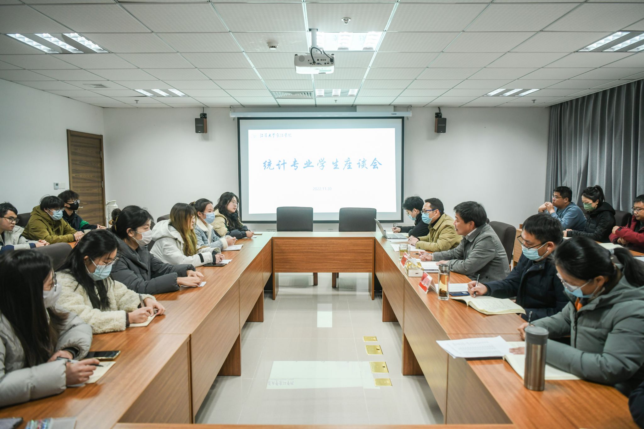 近日,我校在行政楼106会议室召开统计学专业学生座谈会。院长赵喜仓,党委副书记、副院长吴立平,财经学院相关负责人,统计学专业教师、辅导员及学生代表参加座谈会,座谈会由财经学院党总支书记高伏康主持。