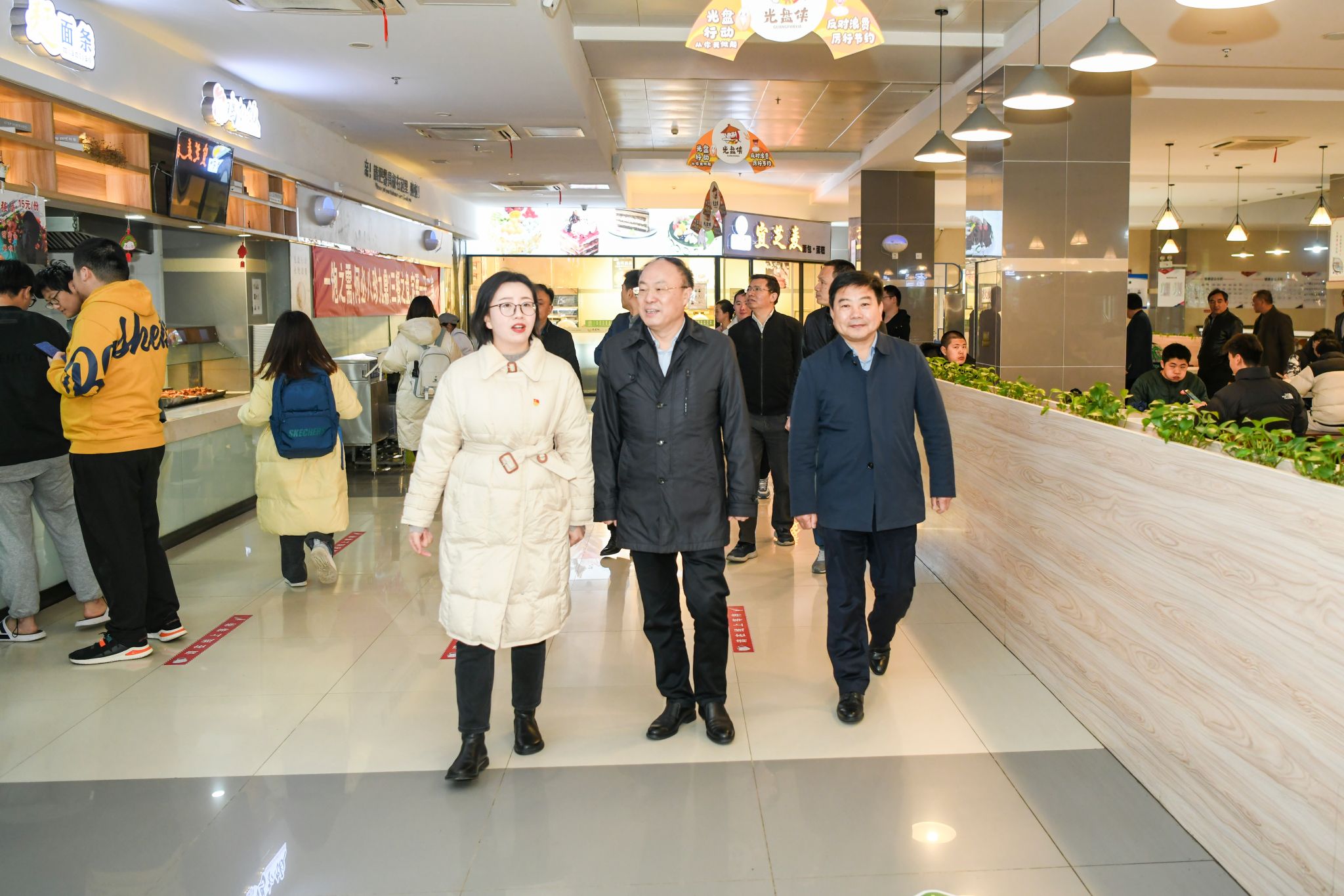 活动中,代表们考察参观了我校机械实验室、物理实验室、第二食堂及体育馆后,在我校行政楼302会议室召开了小组座谈会。