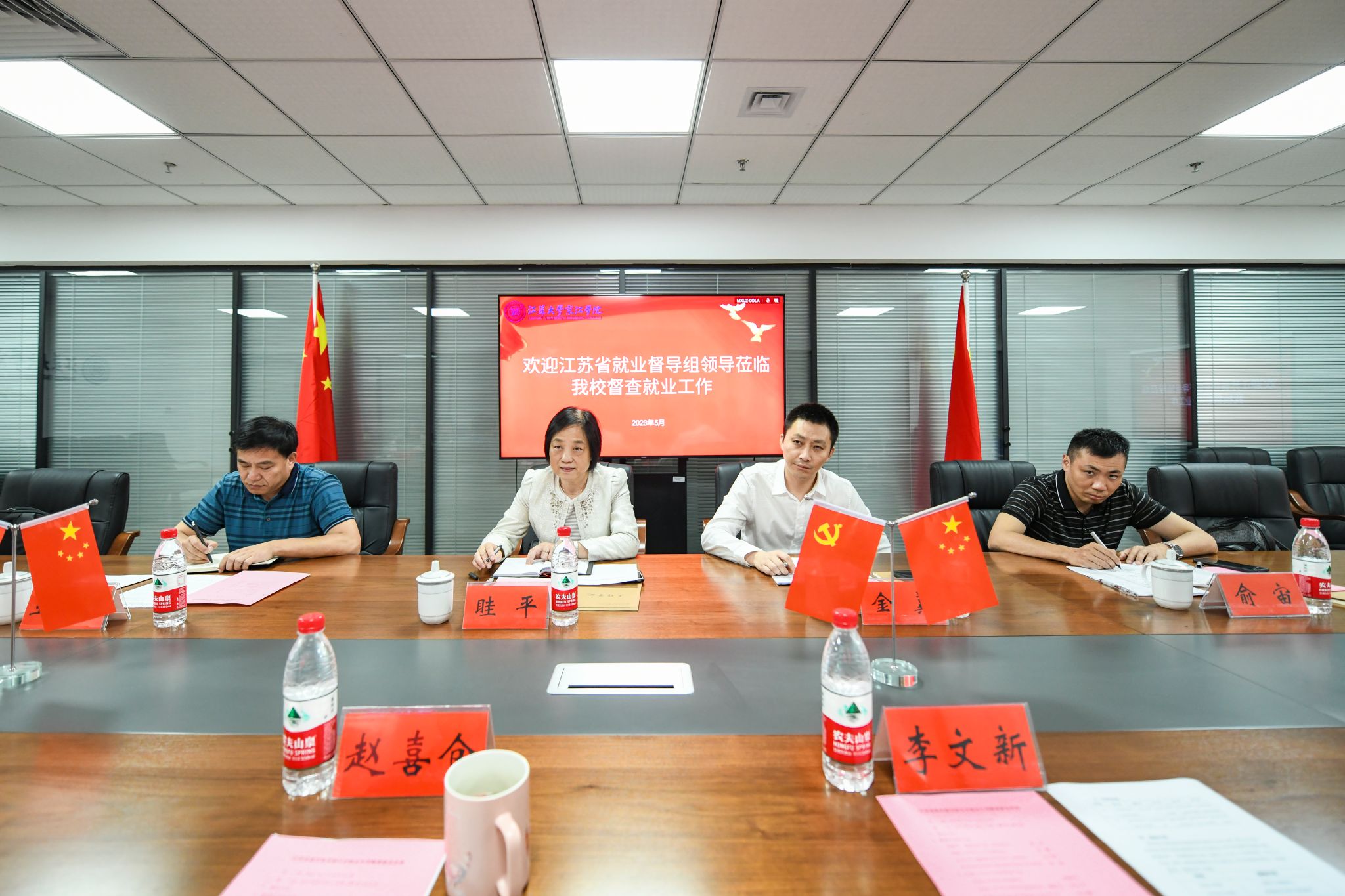 5月17日上午,江苏省2023届高校毕业生就业工作专项督导工作在我校开展。江苏省督学、江苏省教育厅原二级巡视员眭平率领省第十三督查组赴我校开展实地督查,院长赵喜仓,党委副书记、副院长吴立平出席督查会议。