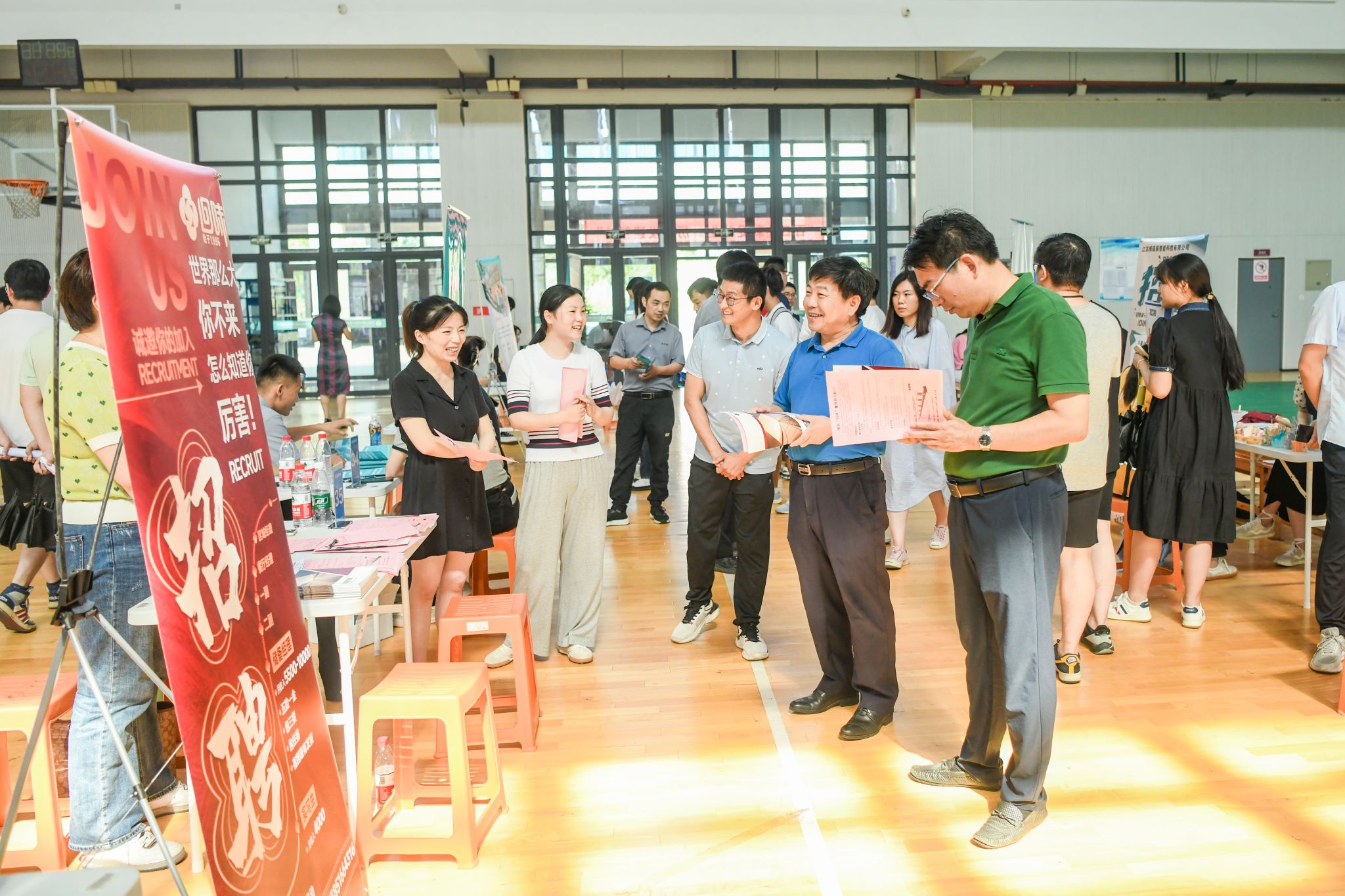 为进一步开展我校学生就业工作,6月14日下午,我校在体育活动中心举办了“百日冲刺促就业 踔厉奋发建新功” 2023届毕业生毕业前暨2024届实习专场招聘会。院长赵喜仓,学生工作部相关负责人,各二级学院(部)党总支书记和2023届、2024届学生参加了本次招聘会。