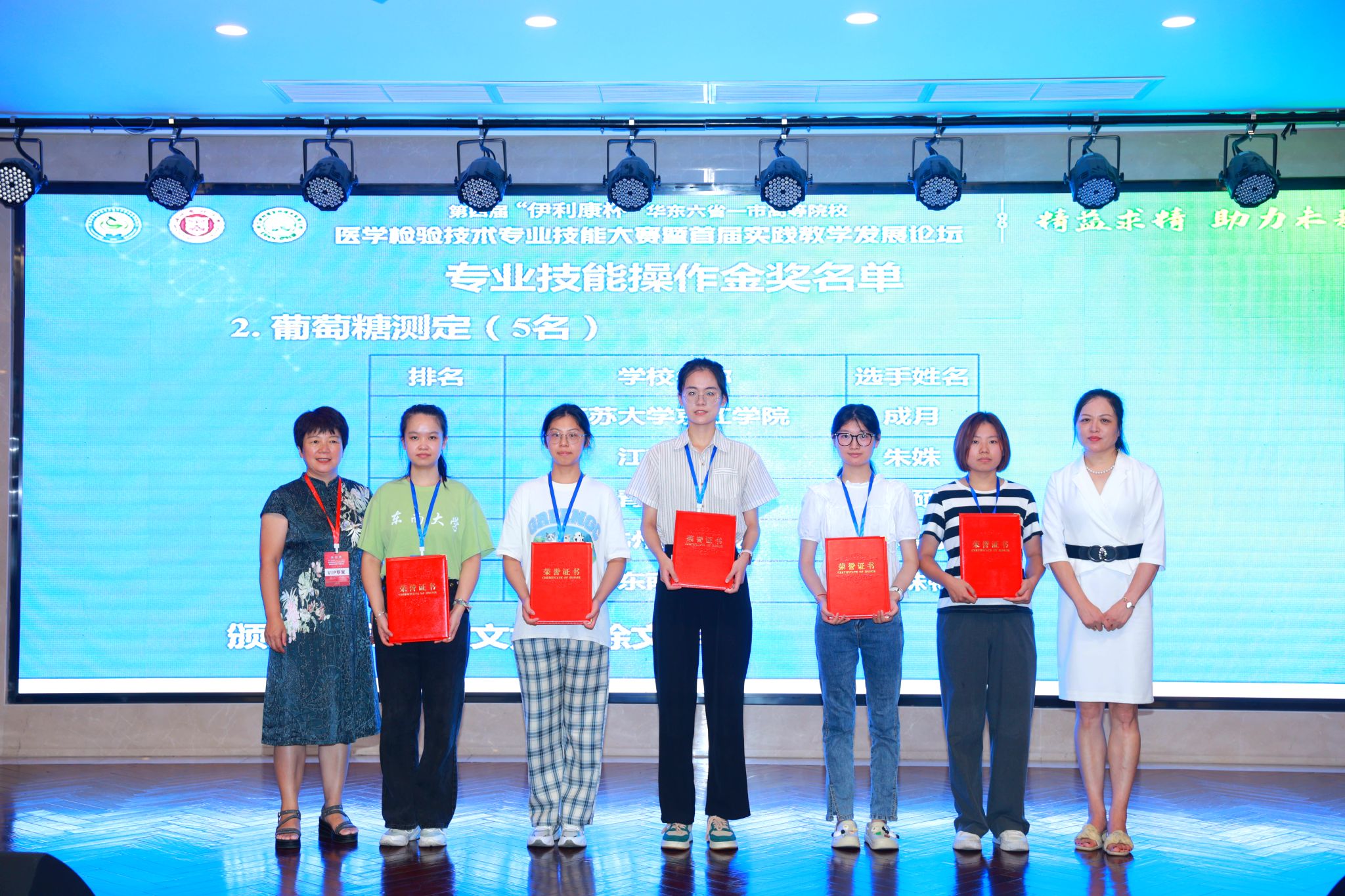 9月22-24日,第四届“伊利康杯”华东六省一市高等院校医学检验技能大赛暨首届实践教学发展论坛在温州医科大学举行,华东六省一市30所高校百余名选手积极参赛。我校医学检验技术专业成月、丁晓洁、刘仁娜和何宗庭四位同学以总分第二名的成绩斩获团体特等奖。在三个单项赛道中,成月同学在葡萄糖测定项目技能操作中获得单项金奖。