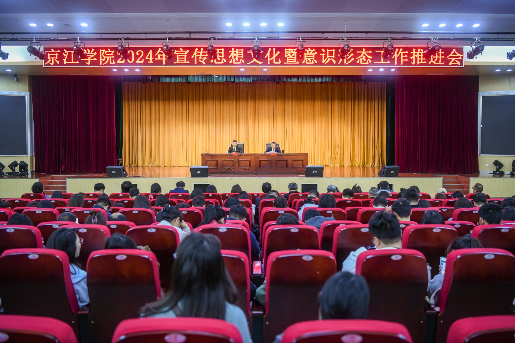 为深入贯彻习近平总书记关于宣传思想文化和意识形态工作的重要指示精神,严格落实意识形态工作责任制,近日,京江学院在大学生活动中心多功能报告厅召开宣传思想文化暨意识形态工作推进会。京江学院全体教职工党员参加会议,院长杜道林主持会议。