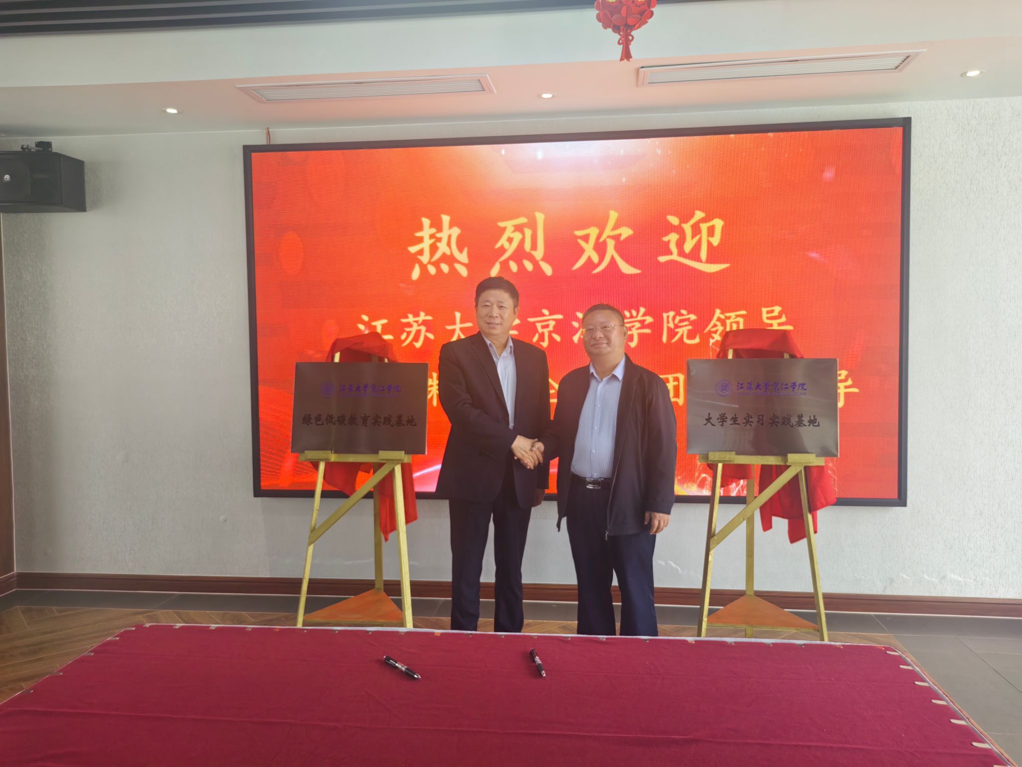 交流会后,席惠明与杜道林共同签署了《江苏大学京江学院与东珠生态环保股份有限公司战略合作协议》,并为“江苏大学京江学院绿色低碳教育实践基地”“江苏大学京江学院实习实践基地”揭牌。