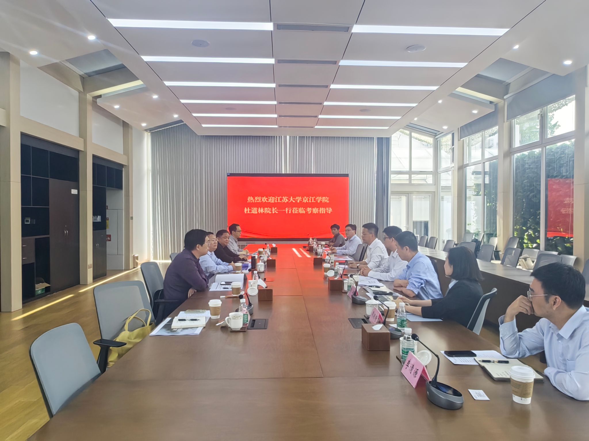 4月18日下午,京江学院院长杜道林,副院长李文新,党委副书记、纪委书记蒋豪,综合办公室相关负责人赴无锡城建发展集团开展访企拓岗促就业工作。无锡城建发展集团副总裁徐劲、无锡城市投资发展有限公司副总经理张国栋以及无锡财通租赁有限公司、无锡青山绿色建筑有限公司相关负责人参加了座谈交流会。会议由徐劲主持。