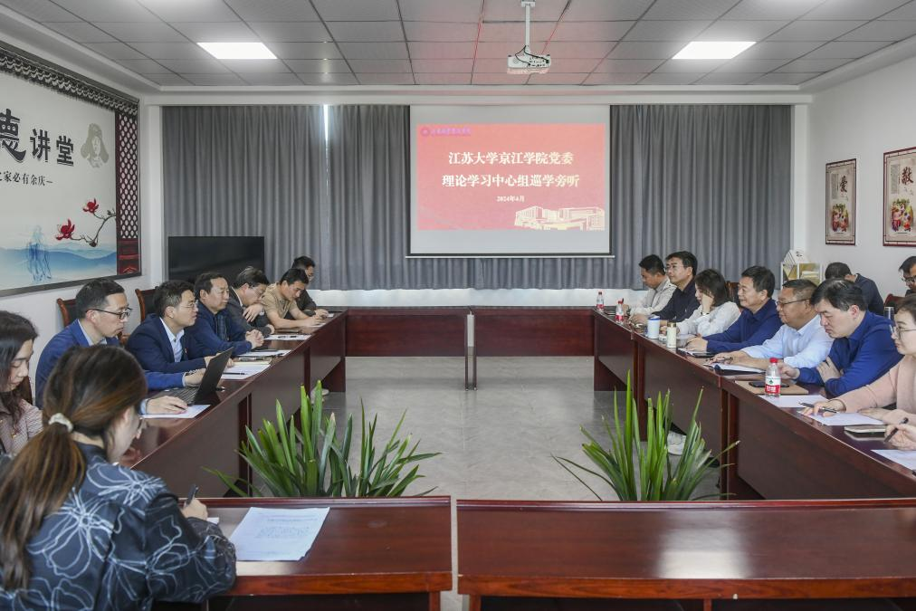 4月26日下午,京江学院党委理论学习中心组在天目湖镇桂林村会议室召开“学习贯彻中央纪委三次全会精神和《中国共产党纪律处分条例》《中国共产党巡视工作条例》,完善学校监督体系,全面加强党的纪律建设,不断推动全面从严治党向纵深发展”专题学习会,院党委书记崔金贵主持会议。江苏大学汽车与交通工程学院党委书记施爱平、党务办副主任吕辉一行进行了巡学旁听。