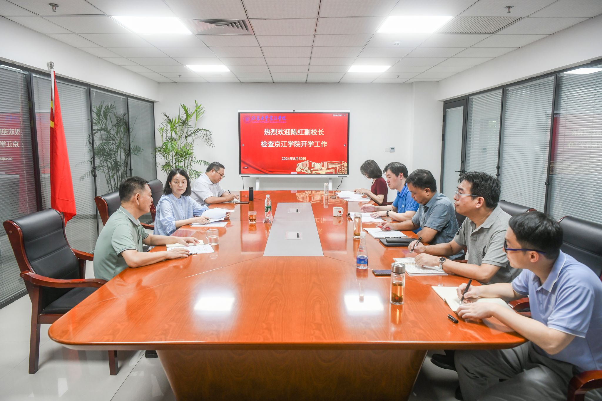 8月30日上午,副校长陈红赴京江学院检查秋季学期开学工作。京江学院全体院领导、京江学院相关职能部门负责人陪同检查。