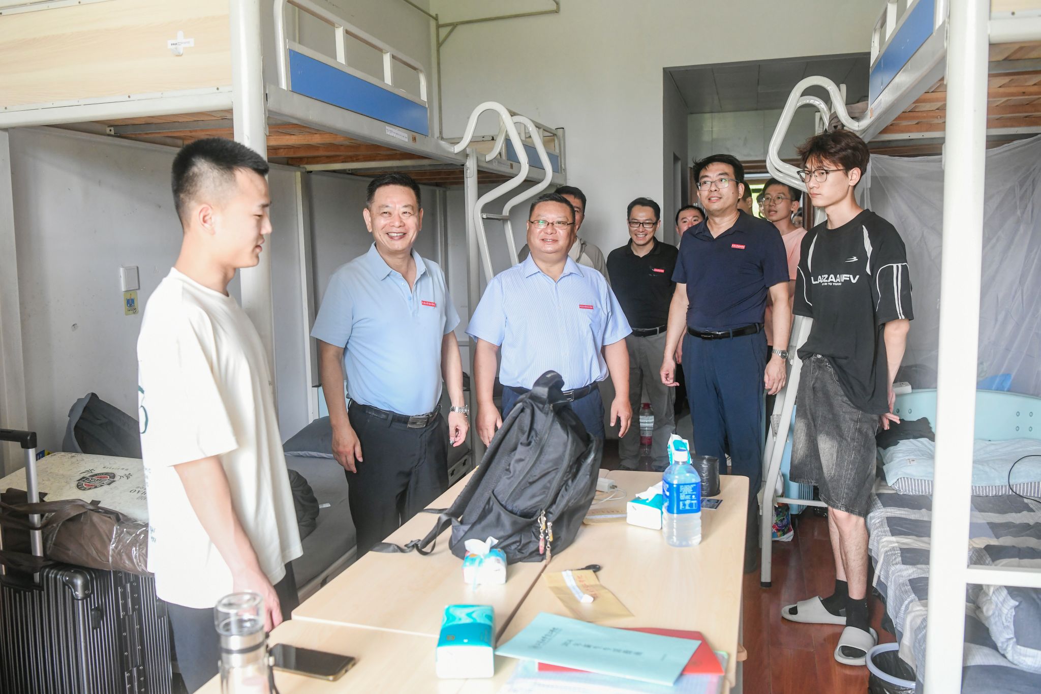 随后,院领导深入13号、14号公寓楼看望了专转本新生。杜道林仔细询问了同学们到校后的感受,希望同学们能尽快适应新环境、担当新角色,迅速融入大学生活,珍惜同宿舍的缘分,互相关心、团结友爱,打造温馨和谐、积极向上的宿舍氛围。同时,用“时不我待、只争朝夕”的精神专心投入学习,不断提升自身专业素养和实践能力,彰显青春风采,贡献青春力量,成为担当民族复兴大任的时代新人。(撰稿单位:学生工作部/图片来源:综合办公室)